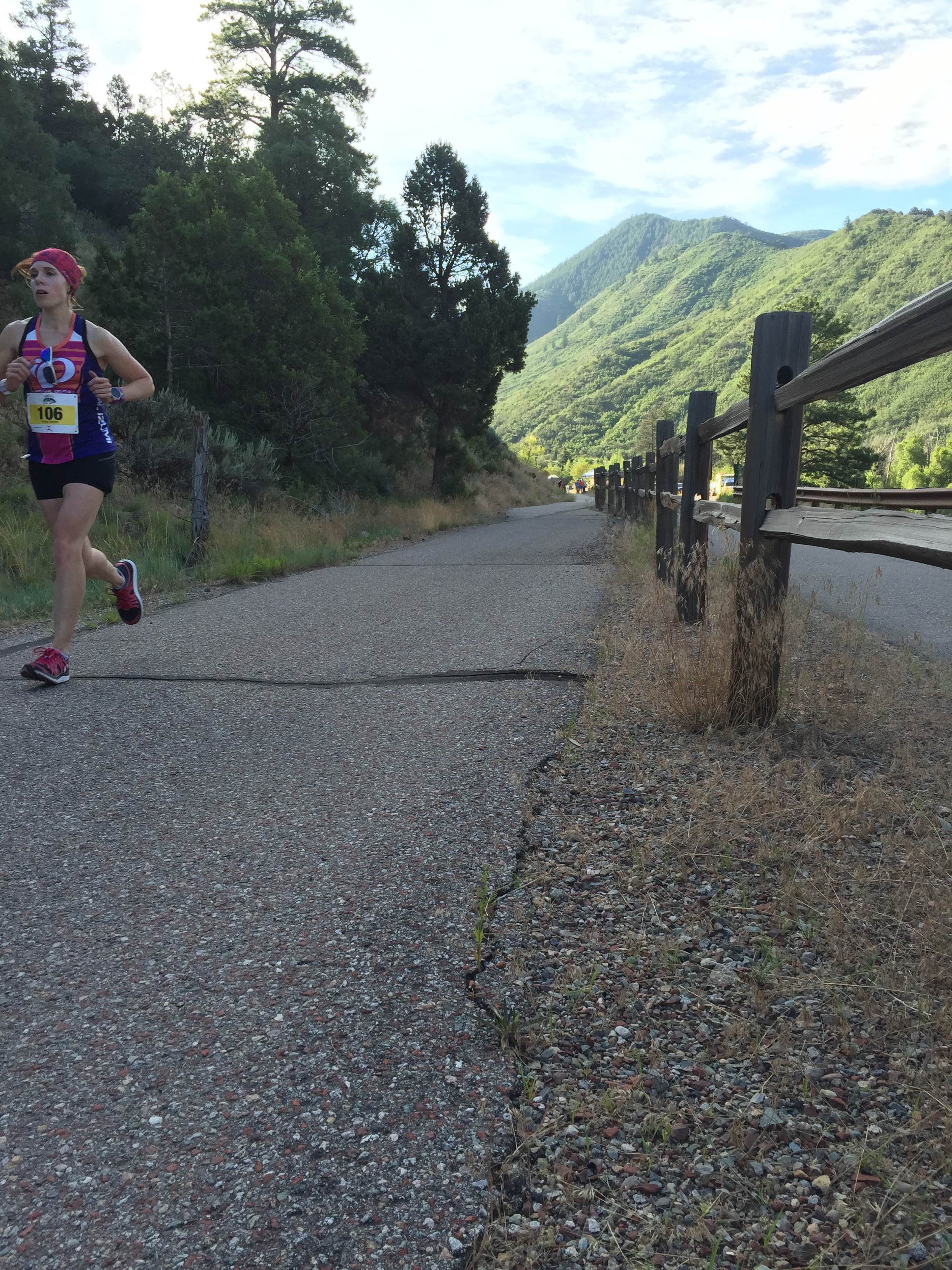 I was meeting my split goals at this point, and keeping my heart in check. Anytime I saw my heart rate start to climb I would slow a bit until it would steady out and then keep on. My body felt good. I was keeping up with the group. The scenery was beautiful, the grade was perfect. Not too steep, but just enough of a descent that my lungs weren’t dying from the speed I was maintaining. So far, so good.